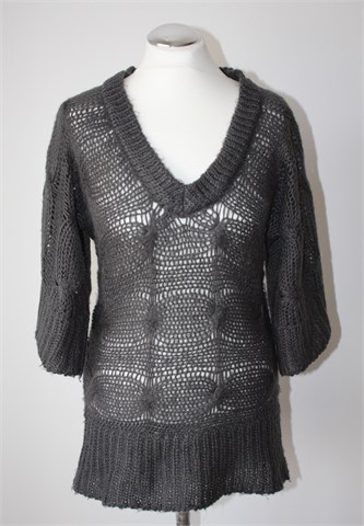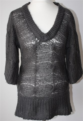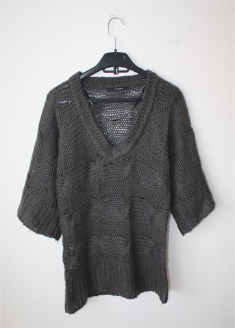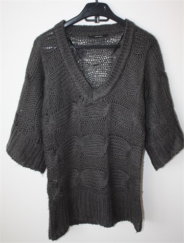 Vero Moda vesta sa poludugim rukavima, tamnije sive boje. Rukavi su široki. Rupičasto (providno) i rastezljivo pletivo, mucasto.