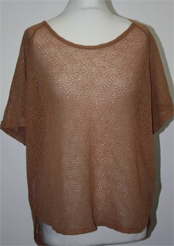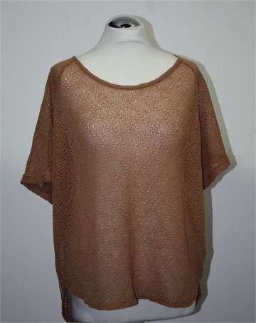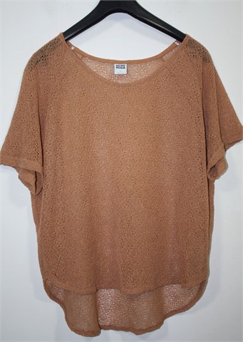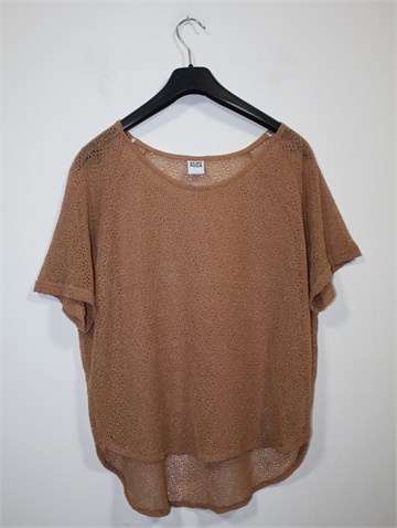 Vero Moda vesta sa kratkim rukavima, neobične nijanse nude-tamno bež boje s uzorkom u pletivu (vidljivo na slikama). Tanje končano pletivo, providno i rastezljivo. Duža sa stražnje strane (vidjeti mjere).