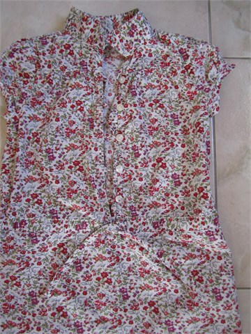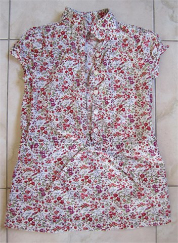Vertbaudet duža košulja/tunika bijele boje sa cvjetnim printom, kratki rukavi. Prednje kopčanje na gumbiće do cca pola dužine, pasica sa vezicom u struku. Kratki rukavići sa gumbićem na kraju rukava. Jako lijepa i kvalitetna.