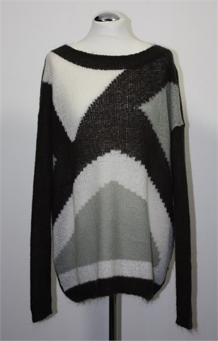 H vesta tamno smeđe boje sa prednjim bijelim i sivim detaljima. Mekano, rupičasto i tanje pletivo. Rastezljiva.