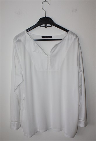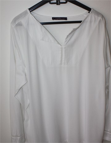 Violeta by Mango majica/bluza sa dugim rukavima, bijele boje. Dvije vrste materijala, sa prednje strane materijal kao za bluze, stražnji dio i rukavi materijal kao za tanji t-shirt. Blago rastezljiva, moguće providna.
