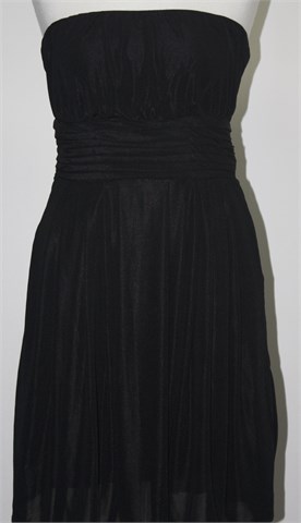Voice of Europe haljina sa otvorenim leđima crne boje (postoje ušice za nakačiti naramenice ali ne dolaze uz haljinu). Bočne plastične žice koje drže formu haljine, rastezljiva gumica iznad grudi ušivena u porub. Vizualno rezana ispod grudi širom trakom, prema dolje se širi pa nije uz tijelo. Podstavljena cijelom dužinom, ima stražnji cif.