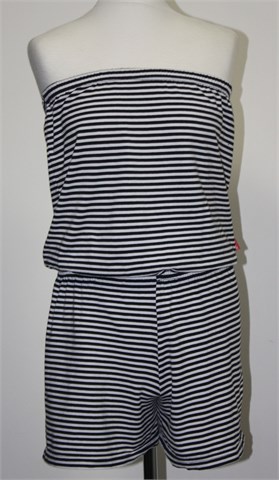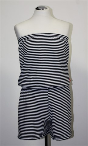 WGW kombinezon u prugastoj kombinaciji crno-bijele boje (moguće i vrlo tamno plava boja). Donji dio kratke hlačice, gornji dio bez naramenica. Gumica u struku i na samom gornjem rubu (prilagodljiva širina - vidjeti mjere). Tanak i rastezljiv materijal.