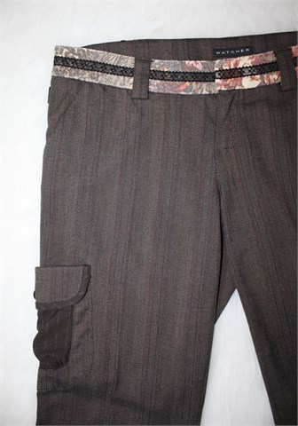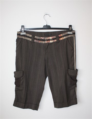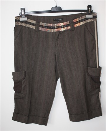 Watcher poluduge hlače/bermude smeđe boje sa uzorkom (vidljivo na slikama). Prednji cif i kopčanje, pasica za remen. Prednji bočni džepovi i džepovi na nogavicama. Blago rastezljive.