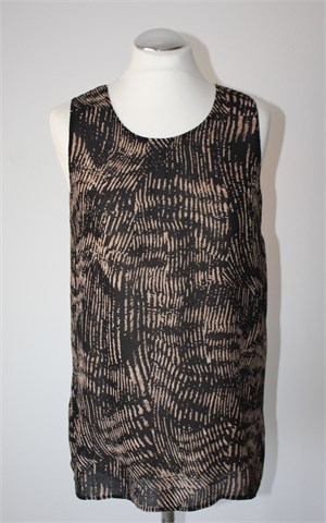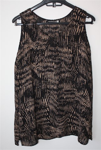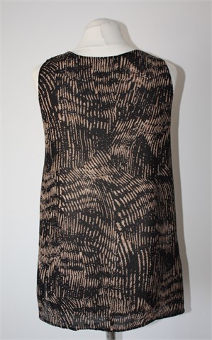 Wearhouse bluza bez rukava, crne boje sa printom (boje i uzorak printa vidljivi na slikama - oznaka modela na etiketi Zebra tunica). Bočni prorezi, blago providna. Malo rastezljiva.