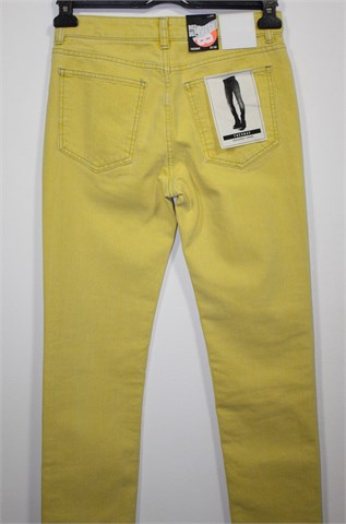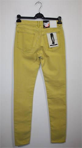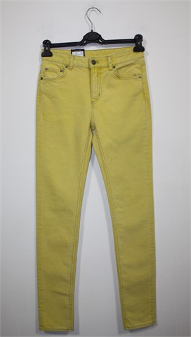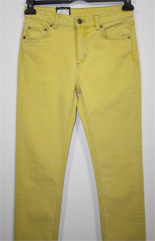 MTWTFSS Weekday traper hlače isprano žute boje. Prednji cif i kopčanje, pasica za remen. Prednji i stražnji klasični džepovi. Oznaka modela - regular waist, slim leg - Tuesday peaches. Vrlo blago rastezljive.