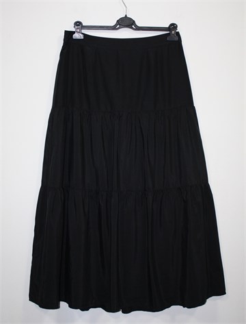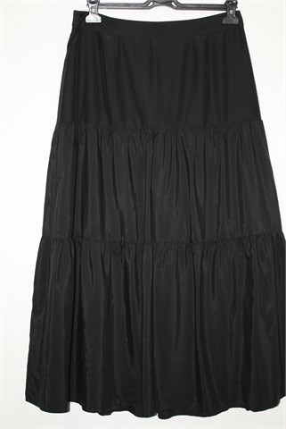 Wera dugačka suknja crne boje, odličan materijal - mješavina svile i pamuka. Stražnji cif i kopčica, podstavljena. Materijal je lagan i prozračan, blago sjajan (ne jako kao na slici).