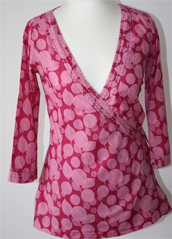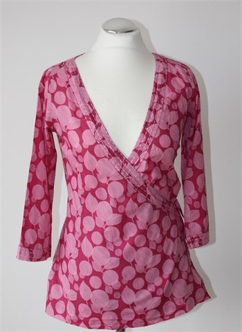 White Stuff bluza sa poludugim rukavima, ciklama roze boje sa printom. Sa prednje strane preklop (bočno vezanje sa trakicama). Tanji pamuk, nerastezljiv. Bočni rasporci.