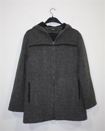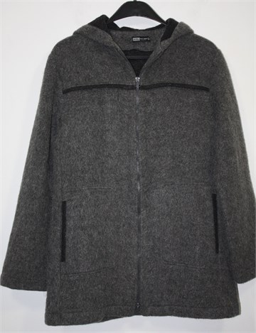 Witboy jakna prošarano sive boje. Prednje kopčanje sa cifom, bočni džepovi i kapuljača. Deblji mucasti materijal.