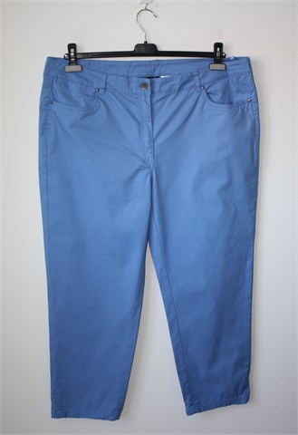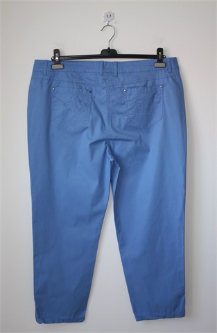 Witteveen pamučne hlače pastelno plave boje. Prednji cif i kopčanje, pasica za remen. Prednji i stražnji džepovi, blago rastezljive. Mali rasporak na dnu nogavice (sa vanjske strane).