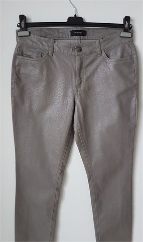 Woman by Tchibo traper hlače sive boje sa srebrnim sjajem. Prednji cif i kopčanje, pasica za remen. Prednji i stražnji klasični džepovi. Rastezljive.