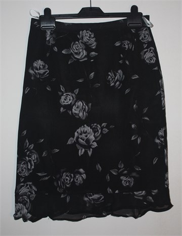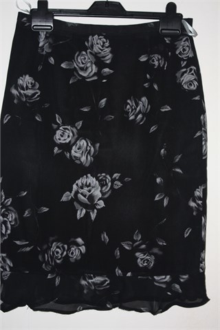 Woman's fashion suknja crne boje sa bijelim cvjetnim printom. Stražnji cif i gumbić, podstavljena. Lagana i lepršava.