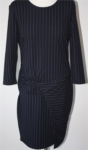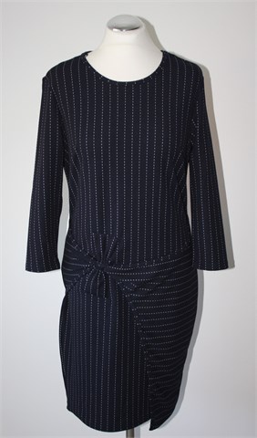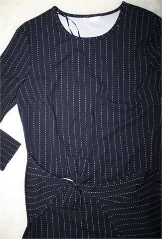 Women haljina/tunika tamno plave boje sa bijelim prugastim uzorkom (vidljivo na slikama). Poludugi rukavi, sa prednje strane ukrasno vezanje (lažni preklop). Tanja i rastezljiva.