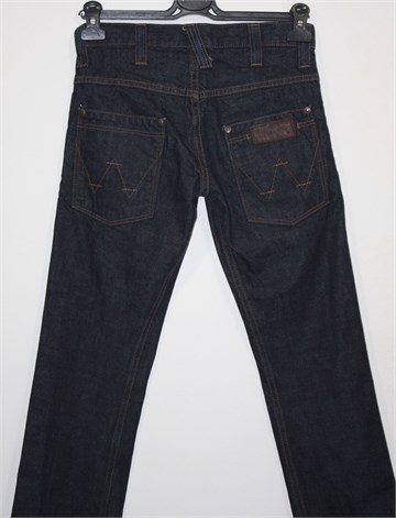 Wrangler traper hlače tamno plave boje, oznaka modela je Spencer. Prednje kopčanje, pasica za remen. Prednji i stražnji džepovi. Ravne nogavice, nisu rastezljive.