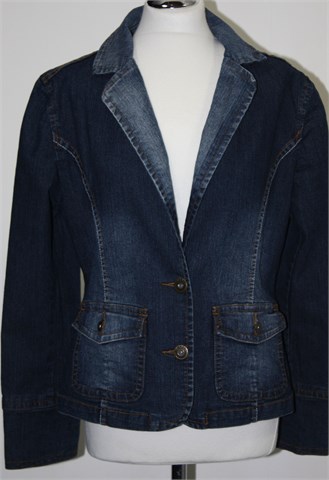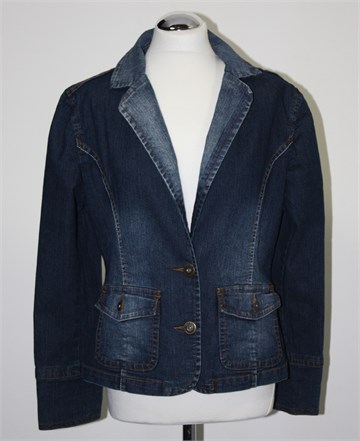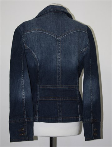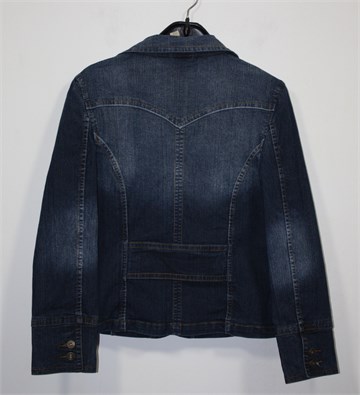 X-Mail jakna/sako od trapera tamnije plave boje, mjestimično ispranog izgleda (tvornički used look). Prednje kopčanje, bočni džepovi sa preklopom i gumbom, po dva gumba na kraju svakog rukava. Jakna je blago strukirana i rastezljiva.