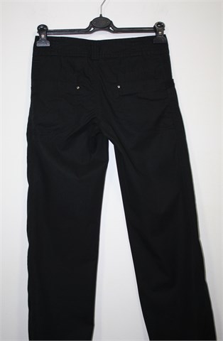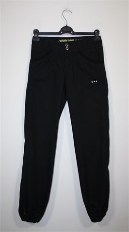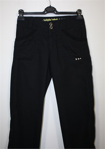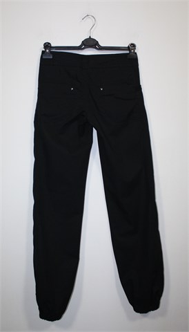 X-Nation pamučne hlače, crne boje. Prednji cif i kopčanje, pasica za remen. Prednji bočni, stražnji skriveni džepovi. Nogavice su na dnu blago stegnute sa gumicom. Lagan i prozračan pamuk, tanji i jedva primjetno prugast.