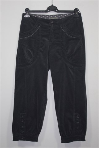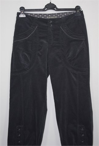 X-Nation poluduge hlače od samta, tamnije sive boje. Prednji cif i kopčanje, pasica za remen. Prednji dublji džepovi, stražnji skriveni sa gumbom. Na dnu nogavica kopčanje sa gumbima. Mekan i rastezljiv samt.