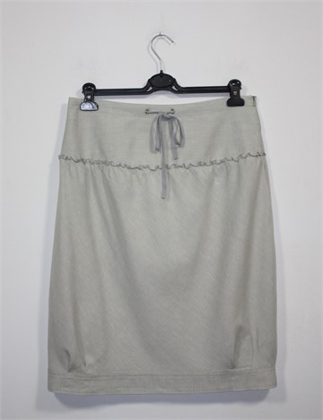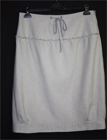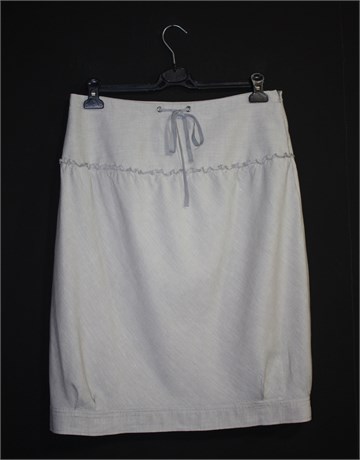 X Nation suknja bijele boje sa sivim prugama. Bočni cif, vezica u pasici (može se stegnuti sa prednje strane). Čvrst ali lagan materijal.