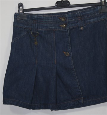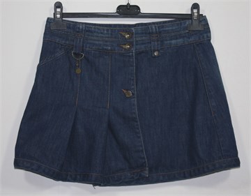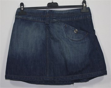 X-nation kraća suknja od trapera, sa prednjim kopčanjem. Bočni džepovi, više ukrasna pasica za remen. Mali stražnji džepić.