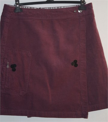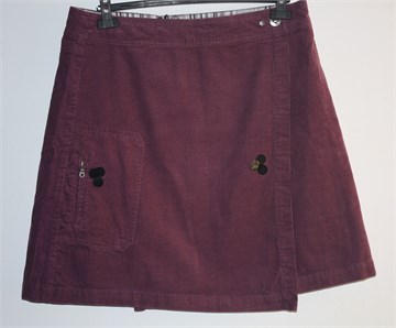 X-nation suknja od samta, svijetlo ljubičaste/lila boje. Prednji preklop, bočni džep sa cifom. Sa prednje strane našivene aplikacije (crne boje).
