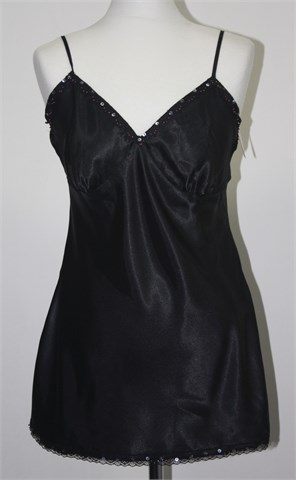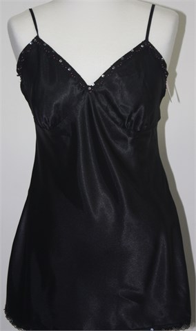 Xhilaration topić crne boje sa ukrasnom čipkicom i našivenim perlicama. Prilagodljive naramenice (kao na grudnjaku), bočni rasporci. Materijal je svilenkast i blago rastezljiv.