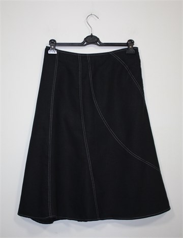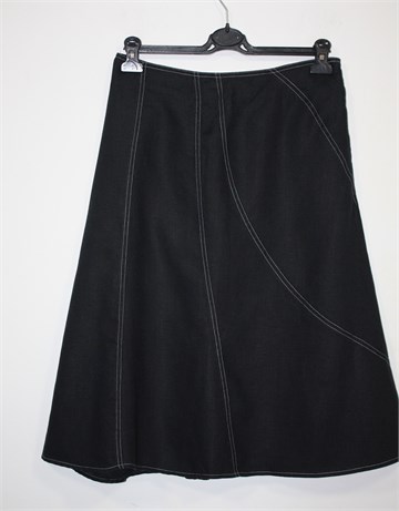 Y Basic lanena suknja crne boje sa bijelim ukrasnim prošivima. Bočni cif, lagana i prozračna.