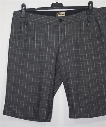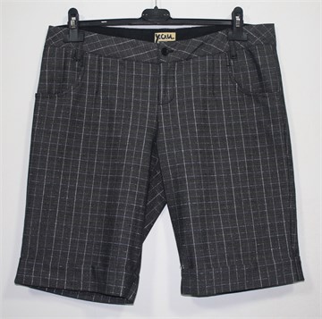 Y.O.U. bermude prošarano crno-bijele boje (djeluju sivo) sa prugama, protkane šljokavim srebrnim nitima pa su blago sjajne. Prednji cif i kopčanje, pasica za remen. Prednji bočni džepovi, stražnji samo ukrasni. Rastezljive.
