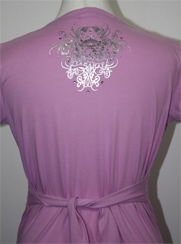 Yamamay haljina rozo-lila boje sa kratkim rukavima i vezanjem u struku. Sa stražnje strane (na gornjem dijelu leđa) aplikacije od cirkona i srebrni print. Mekan i blago rastezljiv materijal (kao za pamučni t-shirt).