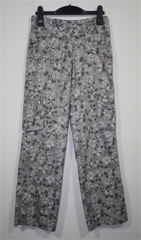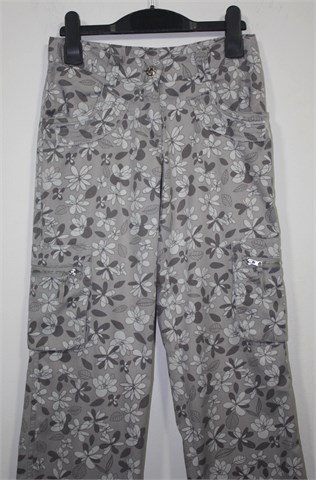 Yes for Girls pamučne hlače sive boje sa cvjetnim printom (boje i uzorci kao na slikama). Prednji cif i kopčanje, pasica za remen. Prednji bočni, stražnji lažni/ukrasni džepovi, džepovi sa cifom na nogavicama. Tanji i mekan pamuk.