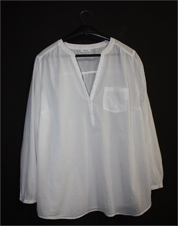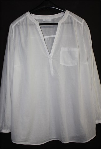 Yessica (C&A) bluza sa dugim rukavima (mogu se nositi i kao kraći - gumbić sa vanjske strane rukava i vezica unutar rukava), bijele boje. Prednje kopčanje i mali džepić na prsima. Lagan, tanak i providan pamuk.