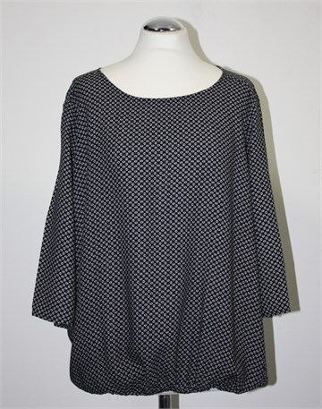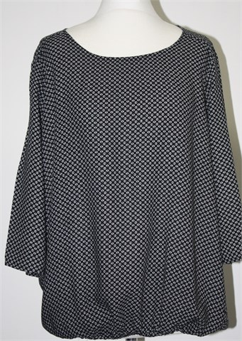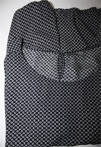 Yessica (C&A) bluza sa poludugim rukavima, crno-bijele boje s uzorkom (vidljivo na slikama). Gumica u pasici, gumbić sa stražnje strane. Lagana i prozračna.