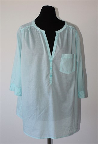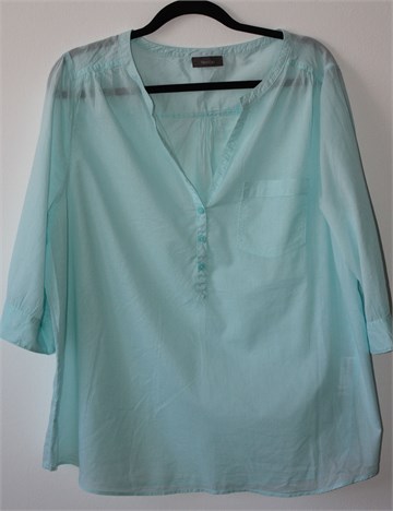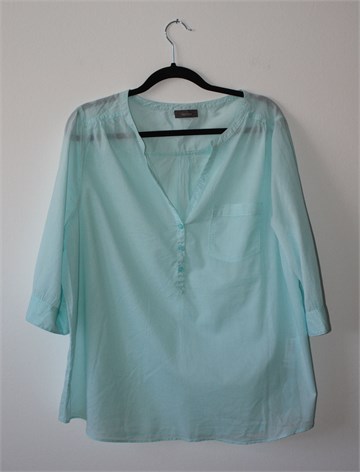 Yessica (C&A) bluza/tunika sa poludugim rukavima, svijetle nijanse mint boje (plavo-zelena nijansa). Sa prednje strane gumbići i džepić na prsima. Tanja i lagana, providna.