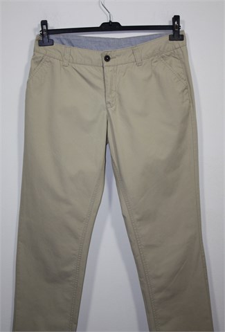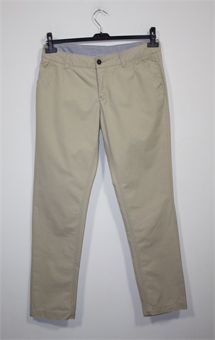 Yessica (C&A) chino hlače svijetlo bež boje. Prednji cif i kopčanje, pasica za remen. Prednji bočni, stražnji skriveni džepovi sa gumbom. Čvrst i kvalitetan pamuk.