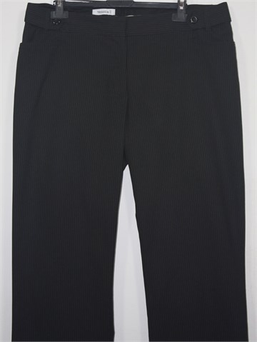 Yessica (C&A) hlače crne boje sa svijetlim prugama, klasičnog kroja. Prednji cif i kopčanje, pasica za remen. Prednji i stražnji džepovi. Ugodan, lagan materijal, vrlo blago rastezljiv.