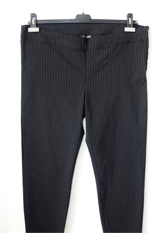 Yessica (C&A) hlače crne boje sa bijelim prugastim uzorkom. Bočni cif, vrlo rastezljive. Skinny kroj.
