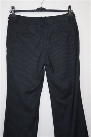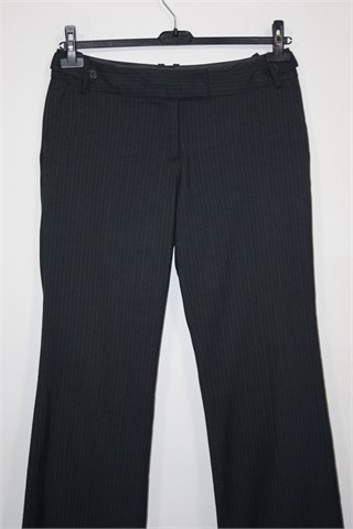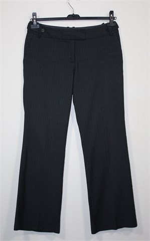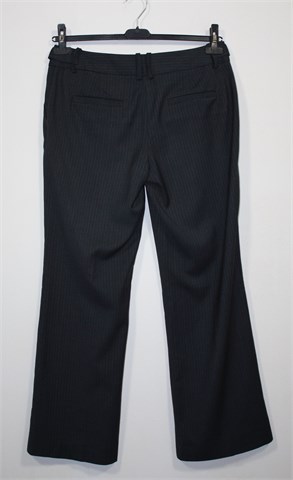 Yessica (C&A) hlače tamno sive boje sa prugama (bijelim i plavim), lijepog klasičnog kroja. Prednji cif i kopčanje, pasica za remen. Bočni džepovi, stražnji skriveni ukrasni. Materijal je mekan i lagan štof, blago rastezljiv.