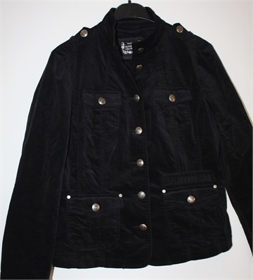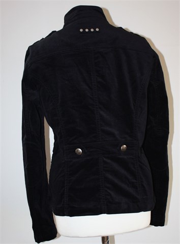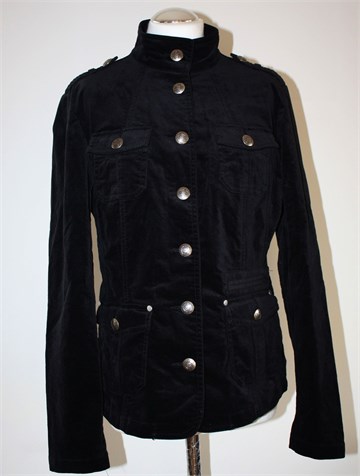 Yessica (C&A) jakna od pliša (plišasti samt) crne boje. Prednje kopčanje, bočni džepovi i džepovi na prsima (svi gumbi su ukrasni). Blago rastezljiva.