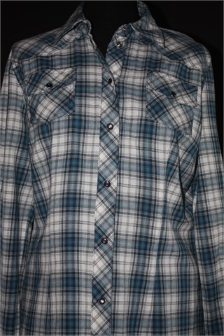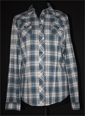 Yessica (C&A) karirana košulja dugih rukava sa prednjim kopčanjem na ukrasne drukere. Džepići na prsima (na preklop sa ukrasnim drukerima). Prednji i stražnji ušitci (blago strukirana). Rukavi se mogu nositi i kao poludugi (vanjski gumbić i vezica unutar rukava).