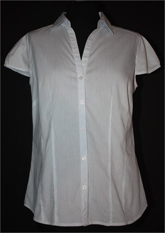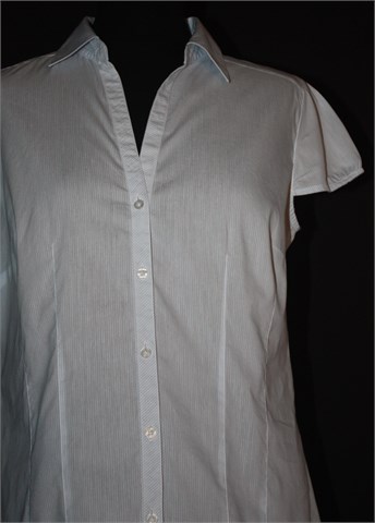 Yessica (C&A) košulja bijele boje sa svijetlo plavim prugicama, kratki rukavi. Prednji i stražnji ušitci, strukirana. Blago rastezljiva.