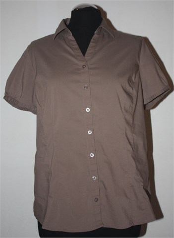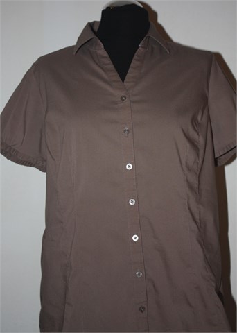 Yessica C&A košulja svijetlo smeđe boje sa kratkim rukavima. Prednje kopčanje na gumbe, prednji i stražnji ušitci (strukirana). Lagan i rastezljiv materijal.