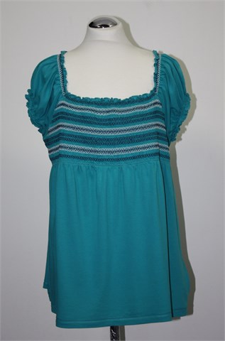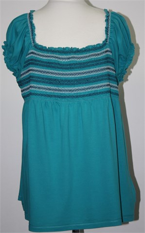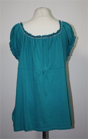 Yessica (C&A) majica sa kratkim rukavima, tamnije tirkizno plave boje. Ukrasni prošivi od konca (oko prednjeg otvora i sa prednje strane). Mekan i rastezljiv pamuk.