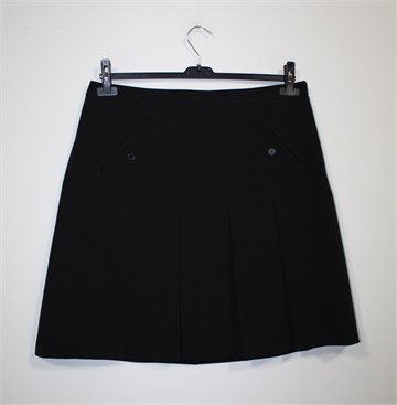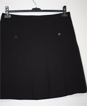 Yessica (C&A) suknja crne boje. Sa prednje strane falde i bočni kosi džepovi. Bočni cif, podstavljena. Lagan materijal.