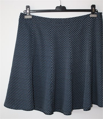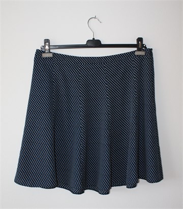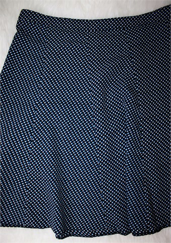 Yessica (C&A) suknja crne boje sa plavo-bijelim printom (vidljivo na slikama). Bočni cif i gumbić. Tanak i lagan materijal, mrvicu duža sa stražnje strane (vidjeti mjere).