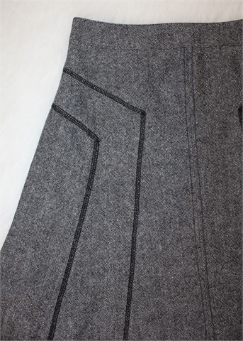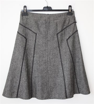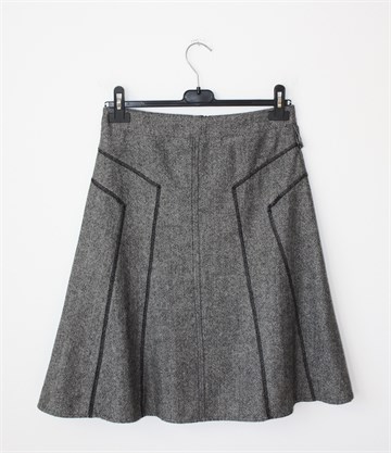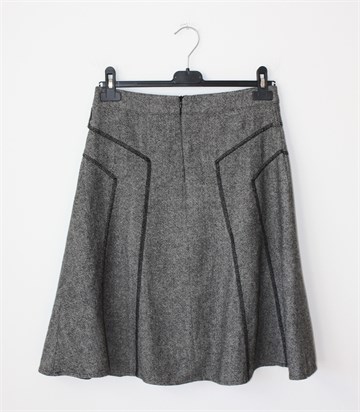 Yessica (C&A) suknja prošarano crno-bijele boje (uzorak vidljiv na slikama). Prošivena crnim koncem, stražnji cif. Podstavljena.
