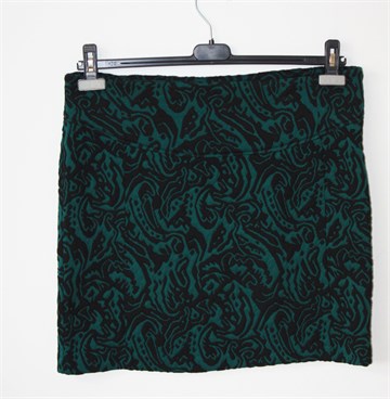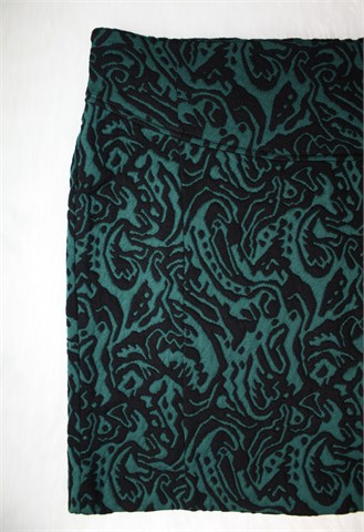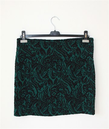 Yessica (C&A) suknja crno-zelene boje sa uzorkom (vidljivo na slikama). Bočni cif, rastezljiva.
