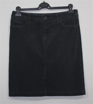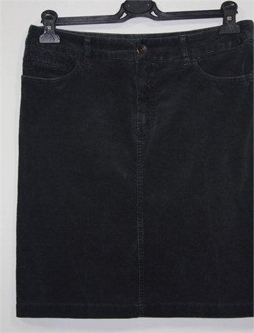 Yessica (C&A) suknja od samta, sive boje. Prednji cif i kopčanje, pasica za remen. Prednji i stražnji klasični džepovi. Mekan i rastezljiv samt.