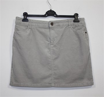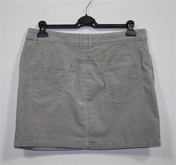 Yessica (C&A) suknja od samta, svijetlo sive boje. Prednji cif i kopčanje, pasica za remen. Prednji i stražnji klasični džepovi, blago rastezljiva. Mekan samt.