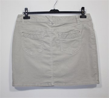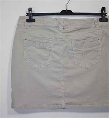 Yessica (C&A) suknja od samta, svijetlo sive boje. Prednji cif i kopčanje, pasica za remen. Prednji i stražnji klasični džepovi (stražnji ukrašeni aplikacijama od sivog konca). Blago rastezljiva.