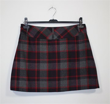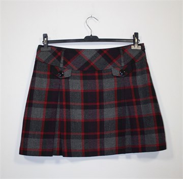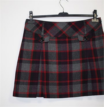 Yessica (C&A) suknja od toplog štofastog materijala, kombinacija crne, sive, ljubičaste i boje ciklame s uzorkom (kao na slici). Bočni cif, pasica za remen. Prednji ukrasni džepići i faldice. Podstavljena.