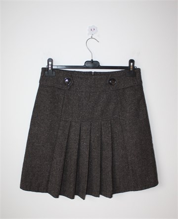 Yessica (C&A) suknja prošarano smeđe boje. Stražnji cif, prednje faldice. Topli štofasti materijal, nije rastezljiv.